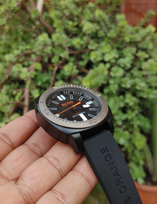 Hugo Boss Rose Gold Case Black Rubber Straps Wrist Watch For Men