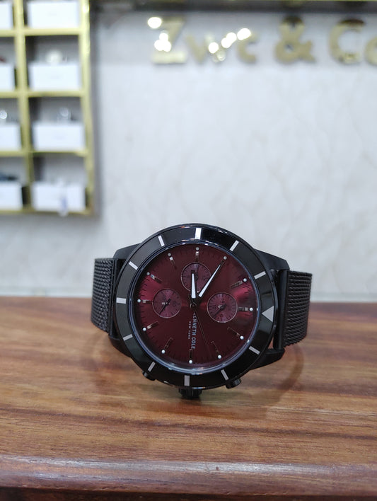 Kenneth Cole Maroon Dial Stainless Steel Case Chain 41mm Wrist Watch for Men