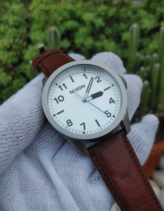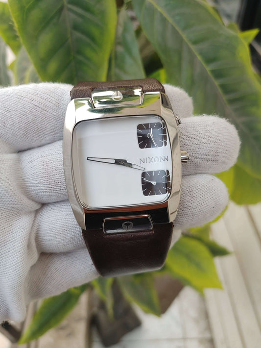 Nixon Leather Strap Wrist Watch For Men Brown Retro Strap