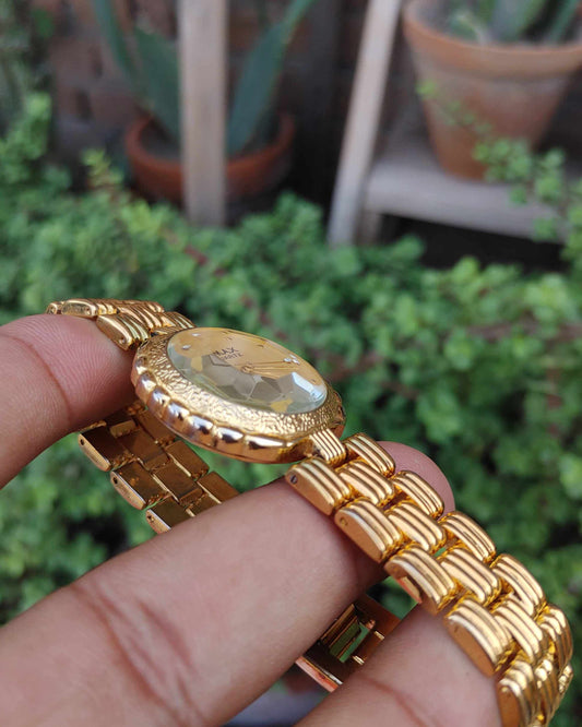 Omax Gold Plated Vintage Beautiful 90s Wrist Watch For Men