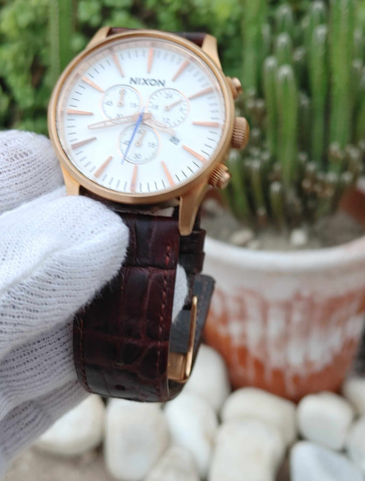 Nixon The Sentry Chrono Leather Strap Wrist Watch For Men Swiss Quartz