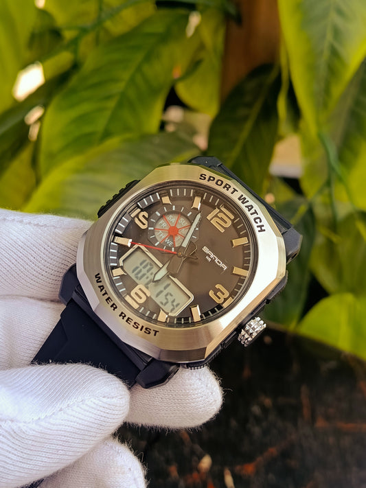 Sanda 6196 Dual Display Sports Watch – Waterproof Analog Digital Wristwatch for Men in Pakistan