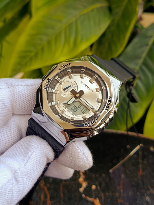 Sanda 3167 Dual Display Watch – Silver Dial Analog Digital Sports Watch for Men
