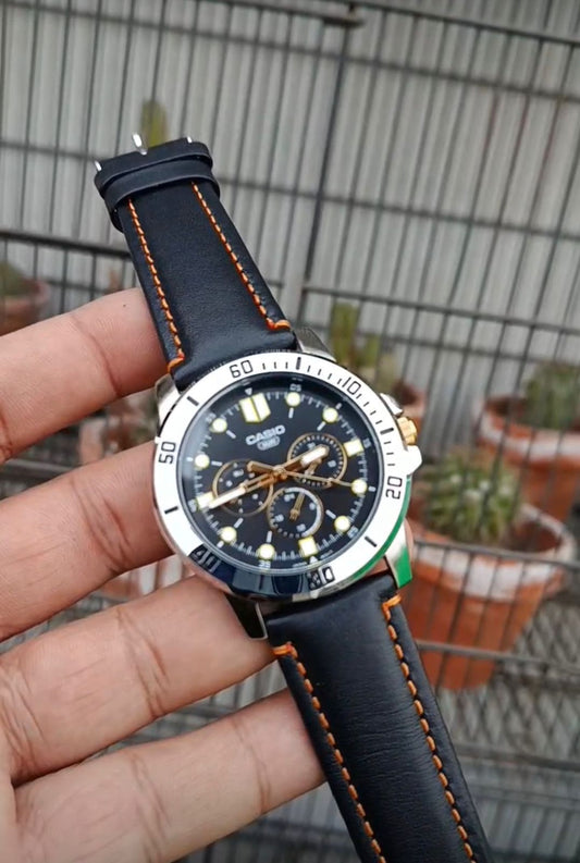 Casio MTP-VD300L-1E Chronograph Black Dial Leather Strap Men’s Watch