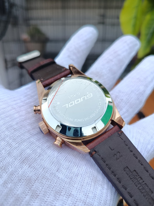 Guool G003 Chronograph Men’s Watch – Dark Brown Leather Strap
