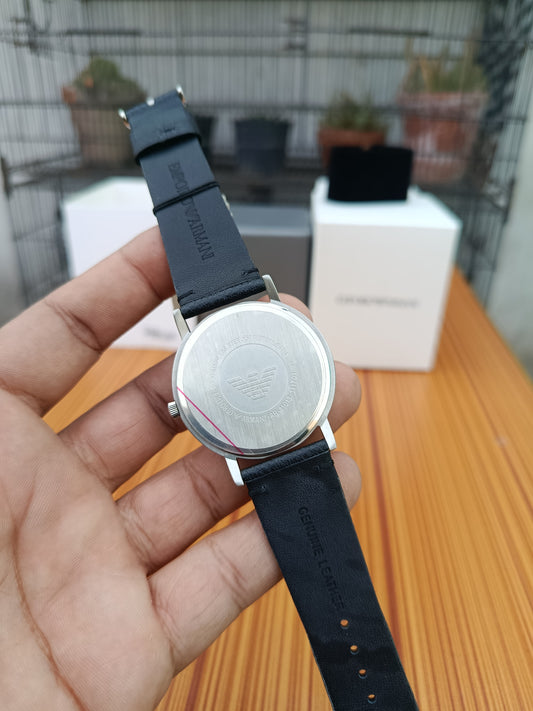 Emporio Armani Kappa Men’s Quartz Black Dial Black Leather Strap Watch – AR11013