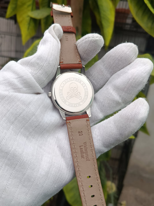 Scalpers Men’s Watch – White Dial with Brown Leather Strap