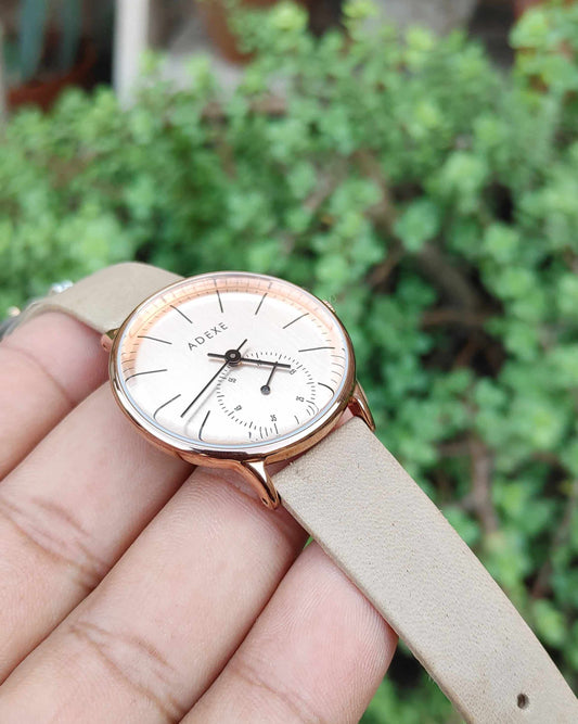 Adexe Watch for Women in Down Second Rose Gold Dial