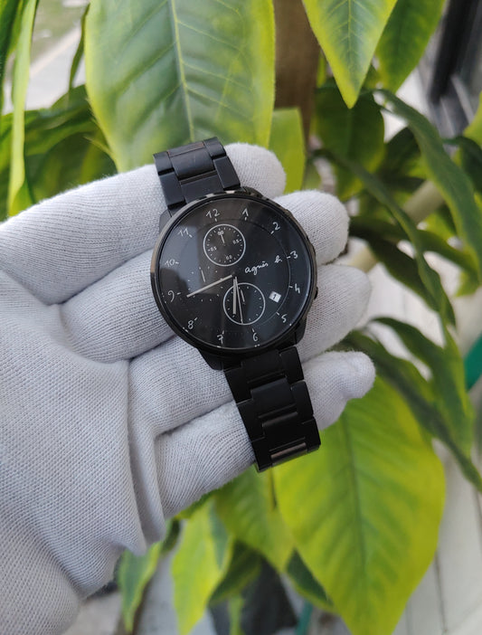 Agnis B Black VD57-KY30 Chrnograph Watch For Men