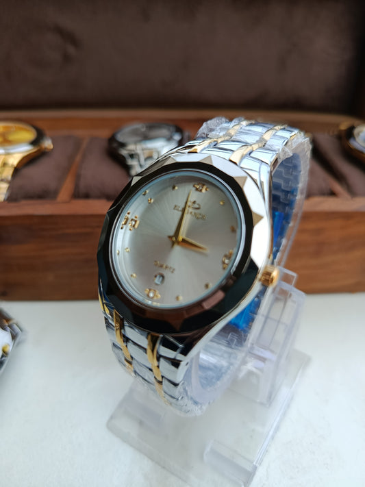 Elegance El-2414-M Double Tone Silver Watch Yellow Gold Dial