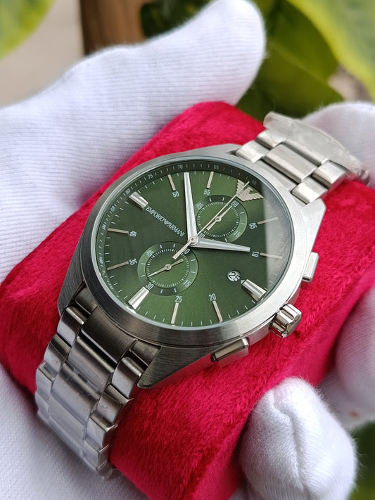 Emporio Armani AR11541 Men’s Chronograph Watch – Green Hulk Dial with Stainless Steel Bracelet