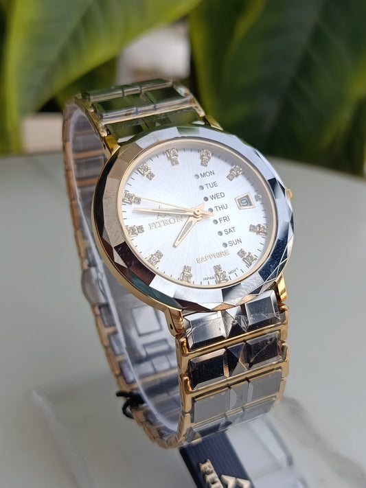 Fitron Double Tone Men’s Watch – Japanese Quartz, Sapphire Glass, Silver & Gold Stainless Steel | Box & Warranty Included