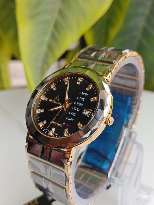 Fitron Sapphire 18k Ceramic Watch Black Dial