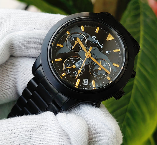 Agnis B Camufalgde VD53-KJ00 Black Stainless-steel Chronograph Watch For Men