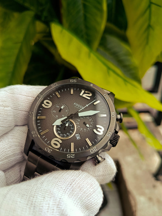 Fossil JR1437 Men's Nate Chronograph Watch - Black Stainless Steel