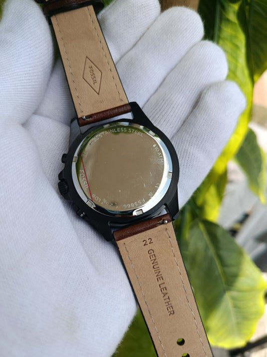 Fossil Hybrid Leather Strap Wrist Watch for Men