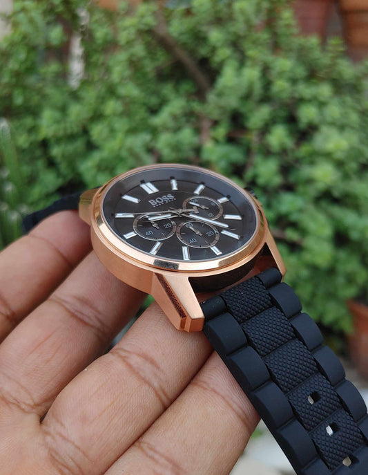 Hugo Boss Rose Gold Case Black Rubber Straps Wrist Watch For Men