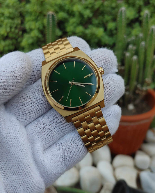 Nixon Green Dial Gold Colour Stainless Steel Watch