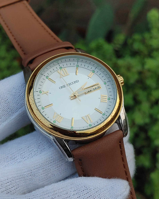 Original Fitron Gold Dial Watch – Japanese Quartz, Sapphire Glass, Stainless Steel | Formal Men’s Watch with Box & Warranty Card