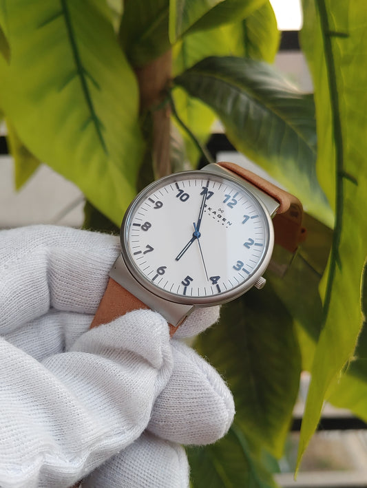 Skagen Ancher Men's Watch – Light Brown Leather Strap, Minimalist Danish Design (Model SKW6194)