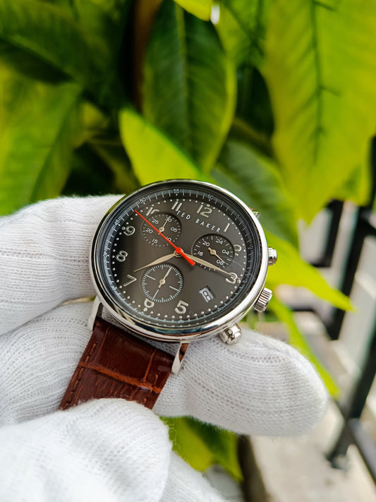 Ted Baker Date Graph Brown Leather Strap Watch For Men