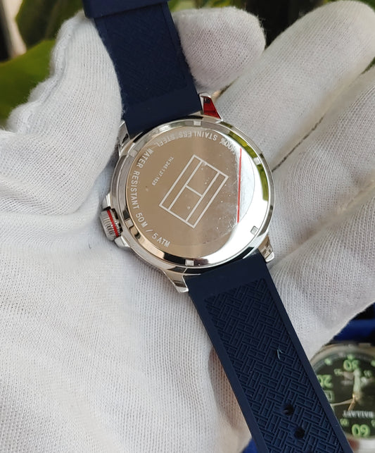 Tommy Hilfiger Blue Rubber Strap Sports Watch For Men Solid Steel Case