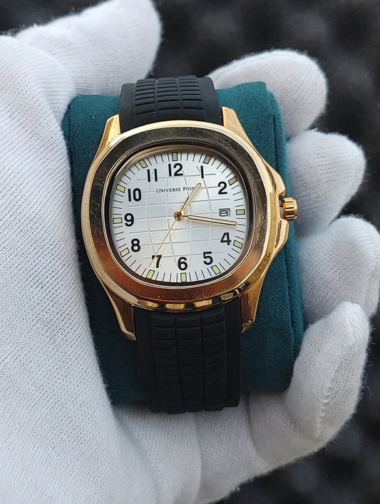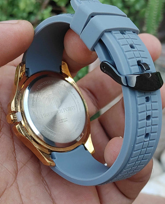 Universe Point Blue Dial Gold Case Rubber Strap Watch for Men
