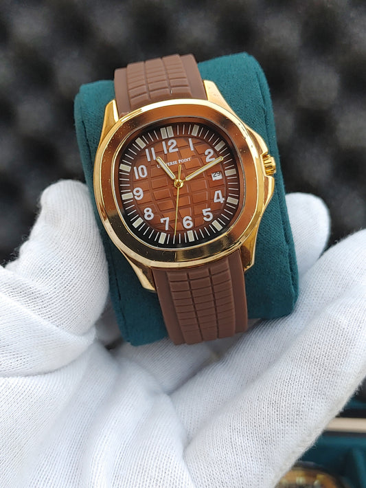 Universe Point Rubber Strap Golden Case Number Dial Watch