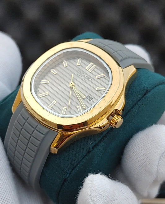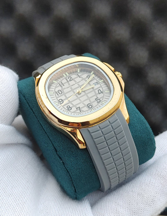 Universe Point Series Golden Watch Grey Rubber Straps Metal Case