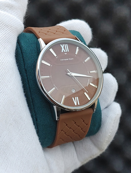 Universe Point SilverCase Brown Rubber Strap Magnatic Lock Watch for Men