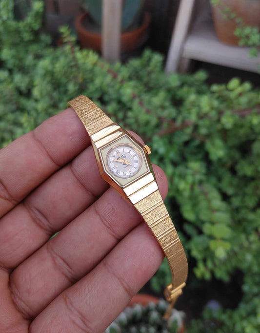 Vintage Black Dial Citizen Watch for Women 90s Stainless-steel Golden Watch