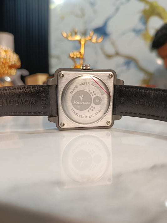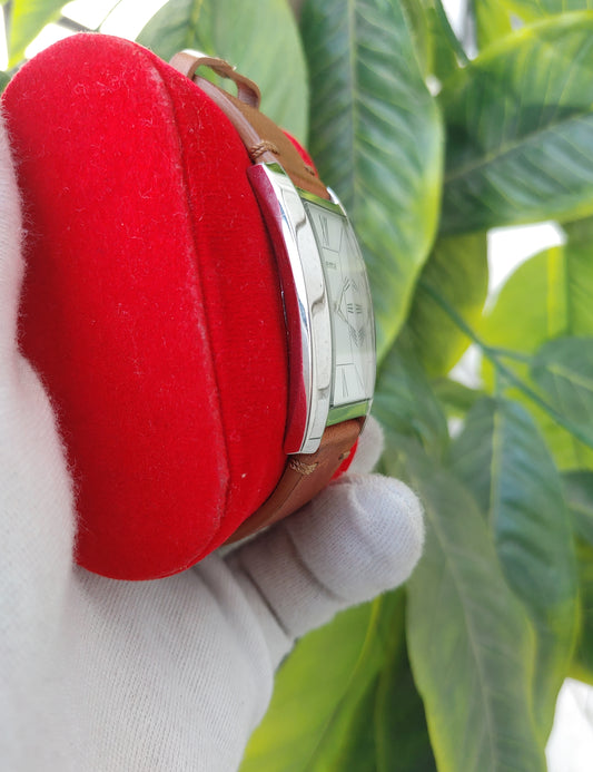 YEMA Paris YM 480 Men's Silver-Tone Quartz Tank Watch with Brown Leather Strap