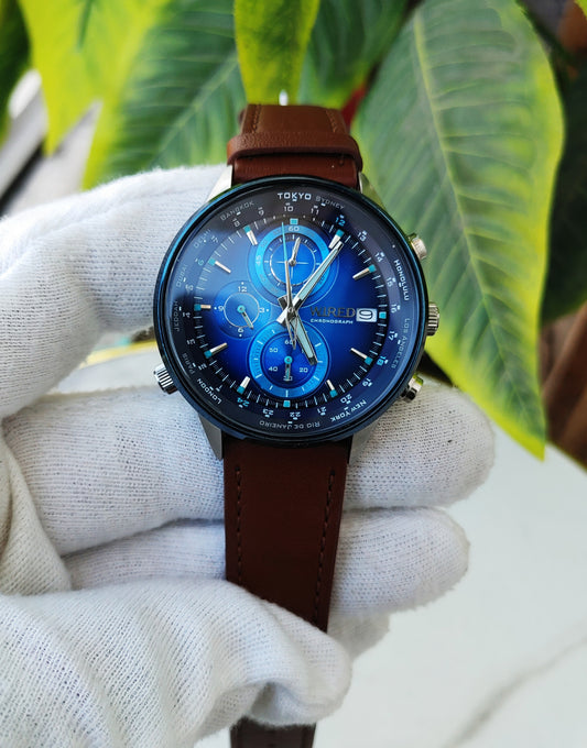 Wired VK63-009 Leather Strap Chrnograph Watch For Men