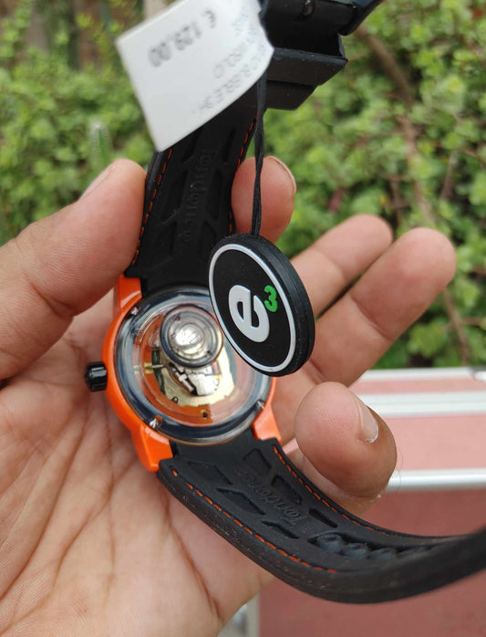 Tenedence Wrist Watch Orange Dial Black Rubber Straps