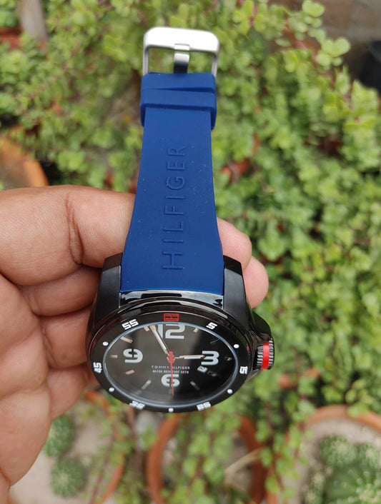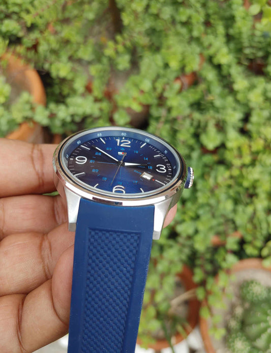 Hilfiger Blue Rubber Band Wrist Watch For Men
