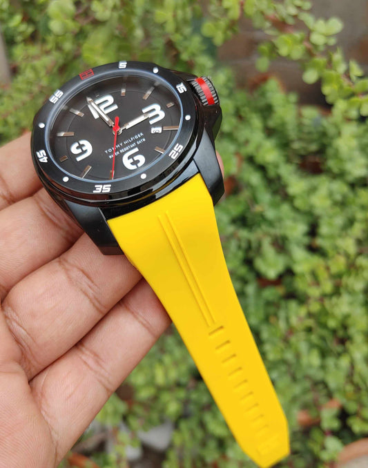 Tommy Hilfiger Yellow Rubber Strap Sports Watch For Men