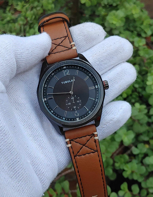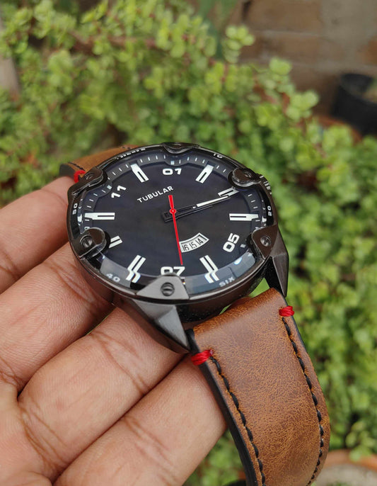 Tubular Wrist Watch For men in leather strap 42mm Dial