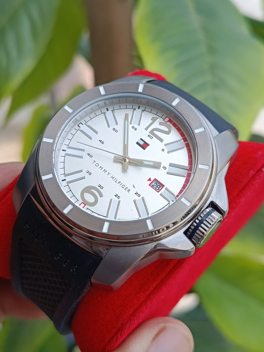 Tommy Hilfiger White Dial Black Rubber Strap Premium Quality Men's Watch