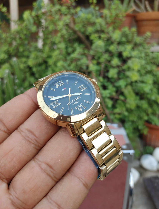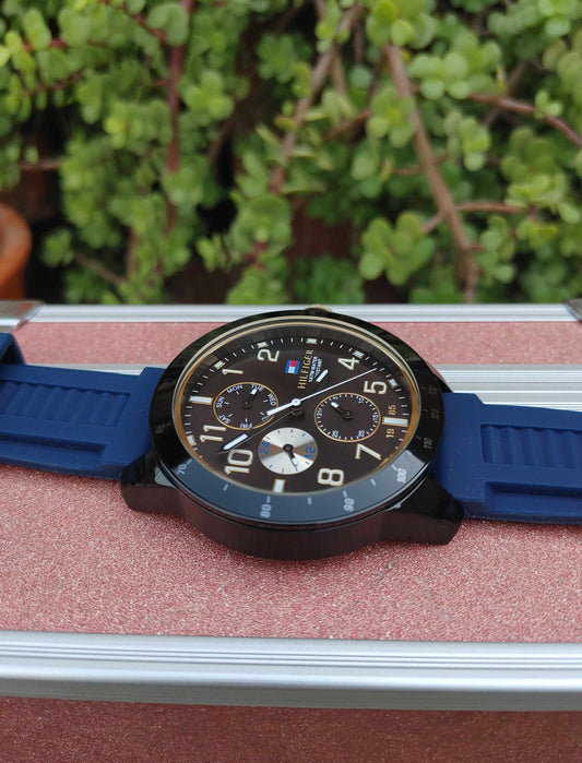 Tommy Hilfiger Wrist Watch for men blue Dial Rubber Strap Solid Case Dual Tone