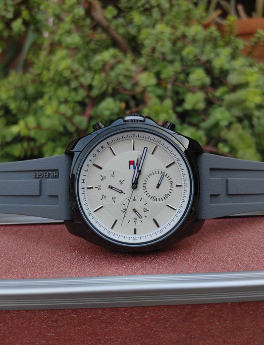 Tommy Hilfiger Grey Rubber Strap Watch For Men