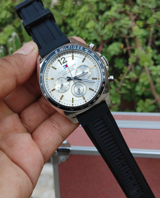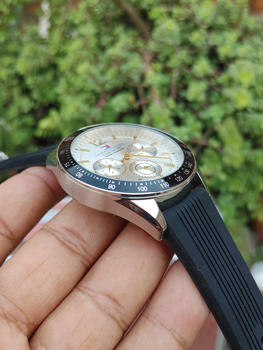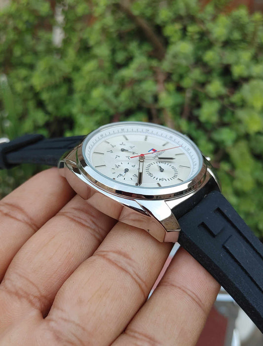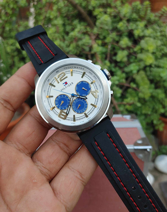 Tommy Hilfiger Rubber Strap Panda Dial Watch For Men