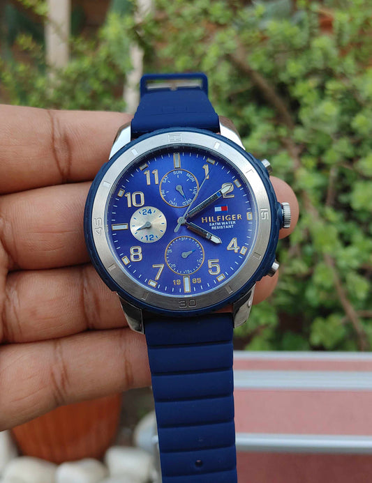 Tommy Hilfiger Wrist Watch For men in Blue Rubber Strap Date o Graph