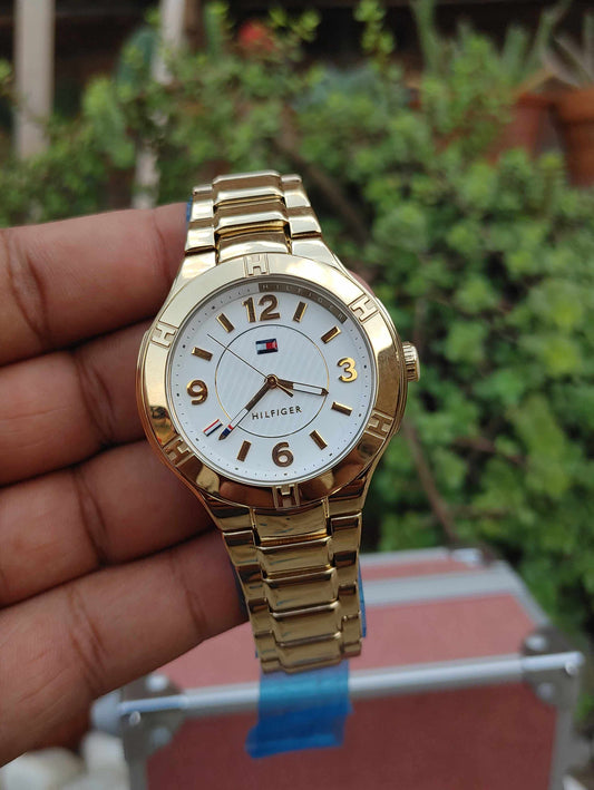 Tommy Hilfiger Wrist Watch for Women Gold Colour White Dial Stainless Steel