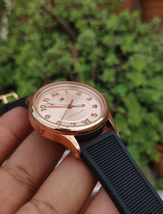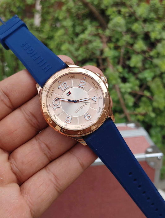 Tommy Hilfiger Rose Gold Case Blue Rubber Strap Watch Unisex