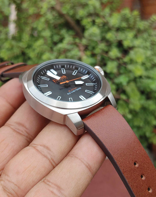 Hugo Boss Black Leather Strap Watch For Men Sports Edition