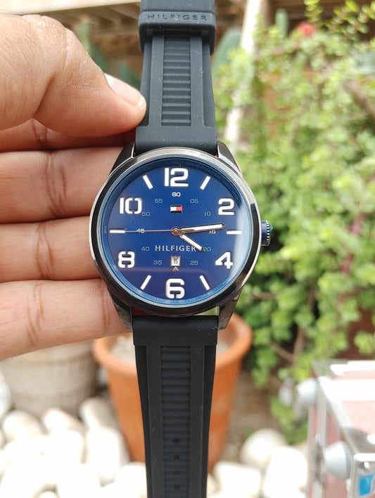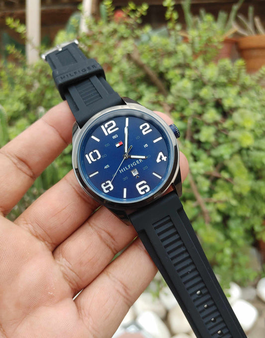 Tommy Hilfiger Blue Dial Black Rubber Strap Watch for Men