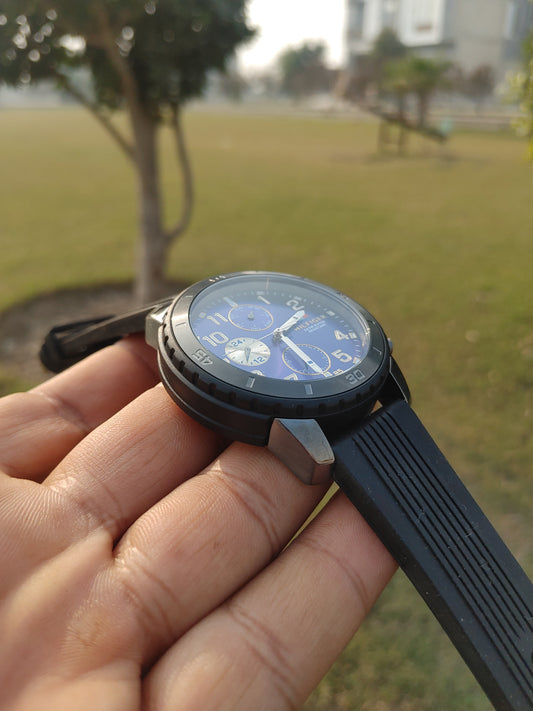 Tommy Hilfiger Black Blue Case Blue Rubber Strap Date o Graph Watch For Men Quartz Japan Movement