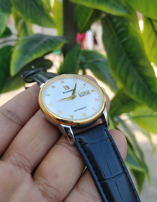 Binger Automatic White Dial Leather Strap 40mm Case Diameter Watch For Men