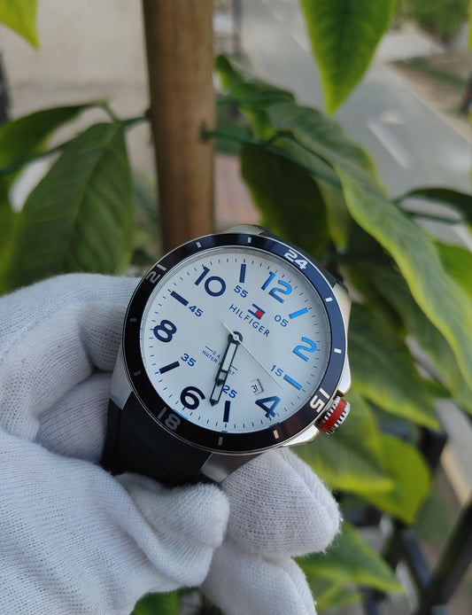 Tommy Hilfiger Sports White Dial Number Dial Watch For Men Grey Rubber Strap