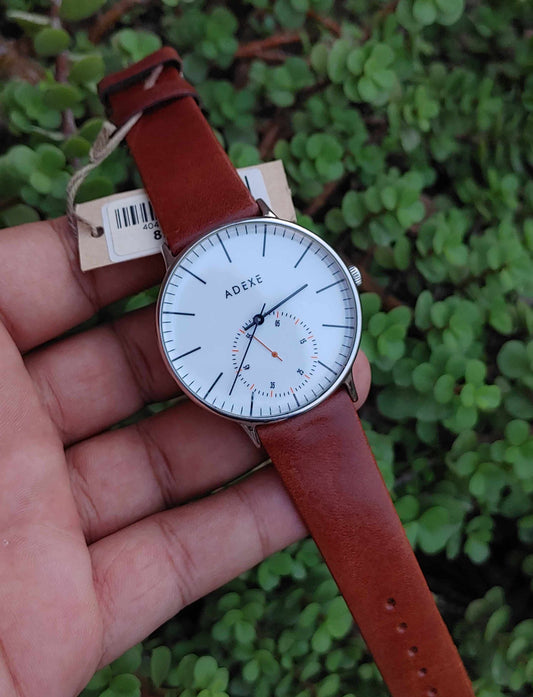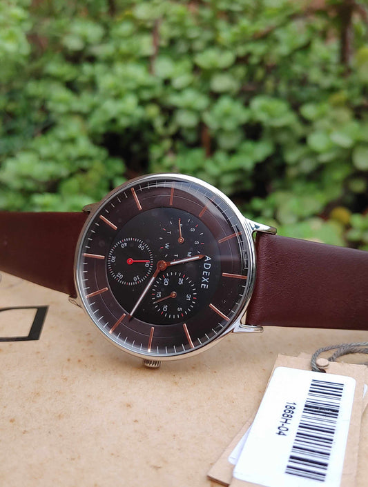 Adexe watch with down second red needle